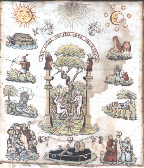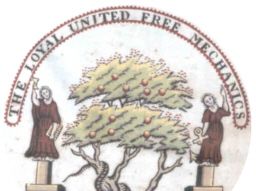 Much of the symbolism of the early trade unions and friendly societies was drawn from that most influential of secret societies, the Masons. Probably at their founding these organisations in deciding on rules, codes of conduct, membership certificates and general administration, looked for existing examples which they could adapt to their own needs. The Loyal United Free Mechanics rules set out the duties of Guardians or Tylers who attended the doors of the Lodge, just as do the Tylers in the masonic movement.